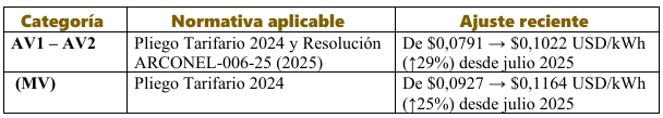 (ARCONEL) y se actualiza periódicamente.